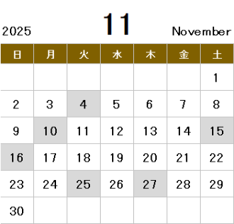 ・10/6、10/9、10/14、10/20、10/27、10/30、11/4、11/10、11/15、11/16、11/25、11/27(天候等の状況により変更になることがあります)