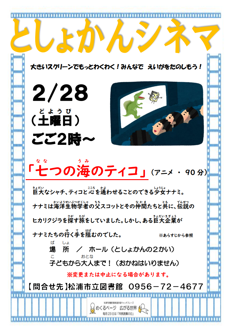 どなたでも無料で参加できる、上映会です。大きなスクリーンでお楽しみください。