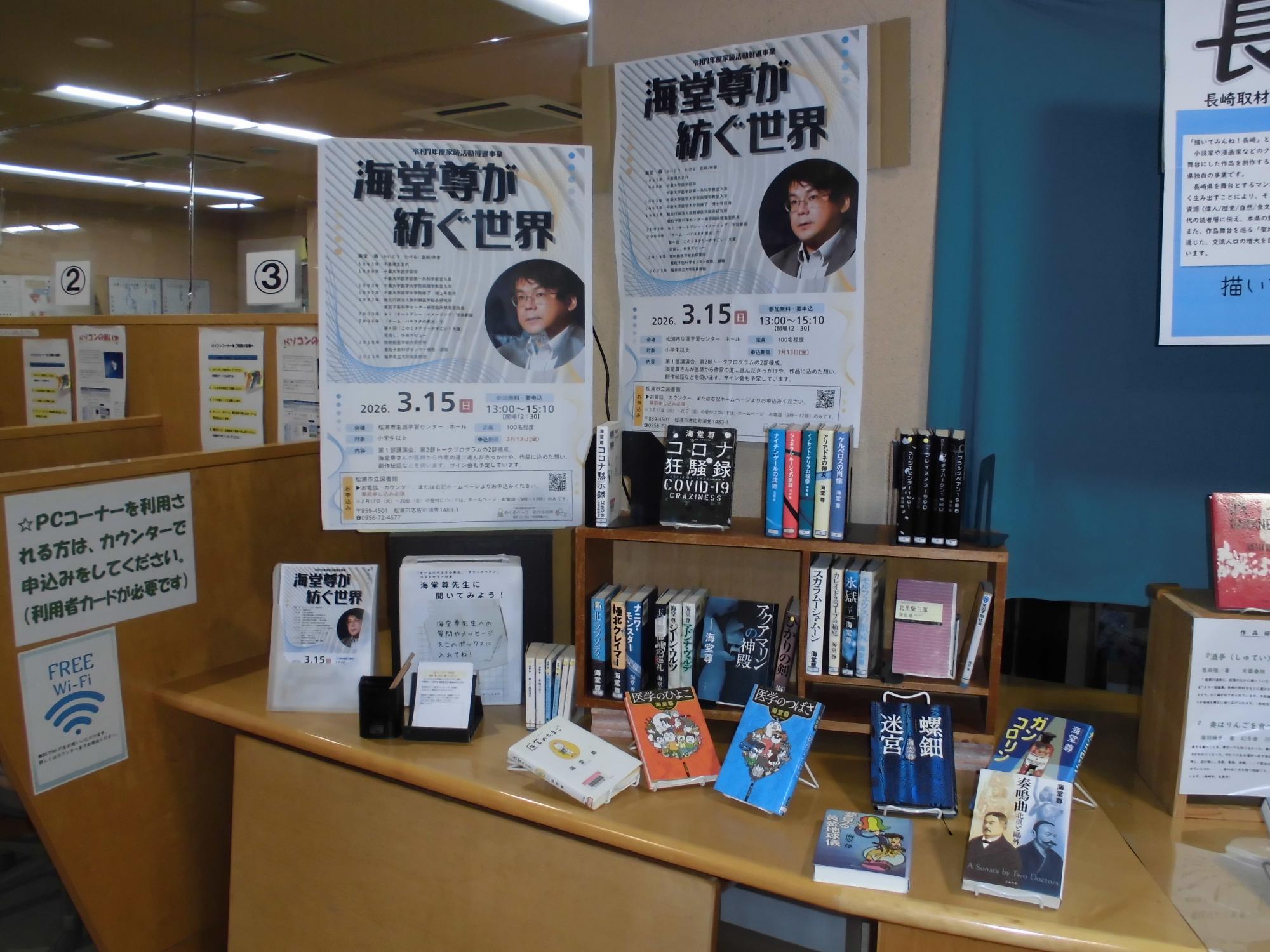 3月15日に『チームバチスタの栄光』でおなじみ、作家 海堂尊さんの講演会を行うのにちなんで、海堂尊さんの作品を集めました。