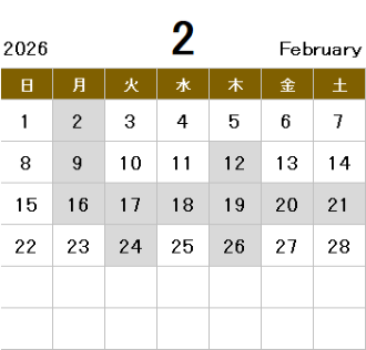 ・1/1、1/2、1/3、1/4、1/5、1/8、1/13、1/19、1/26、1/29、2/2、2/9、2/12、2/16、2/17、2/18、2/19、2/20、2/21、2/24、2/26(天候等の状況により変更になることがあります)